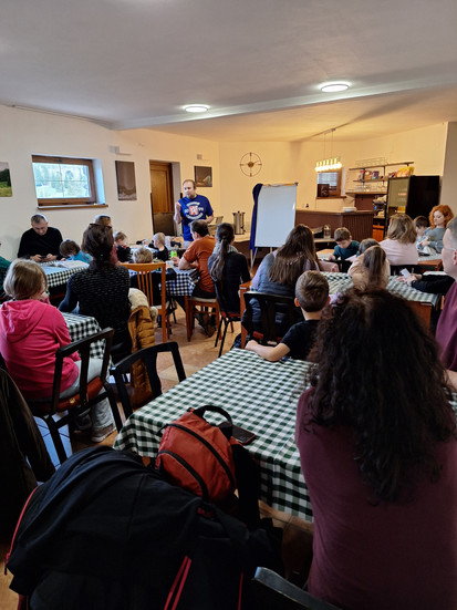 Keď sme si po večeri vyhodnotili šifrovačku a deti dostali sladkú odmenu, Darinka mala pripravené kvízy. Jeden zvieratkový a jeden rozprávkový. Wau... To ste mali vidieť. Vďaka Kahoot získal kvíz obrovskú dynamiku a v miestnosti to vrelo. Malí, veľkí, všetci naplno prežívali správne, či nesprávne odpovede. Ani odmena pre víťazov nebola potrebná. Všetci boli spokojní so zážitkom.